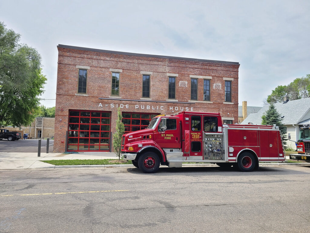 This project involved the renovation of historic, former Fire Station No. 10 at 754 Randolph Avenue in St. Paul, Minnesota into a microbrewery, taproom and coffee shop with a second floor event center. Work also included a patio and asphalt parking lot. The space pays tribute to its former use with fire station doors, references to Station 10 and Fort Road on the bar.