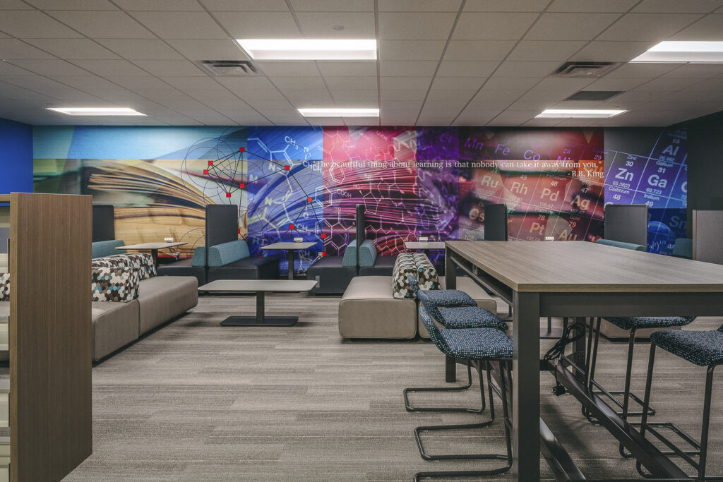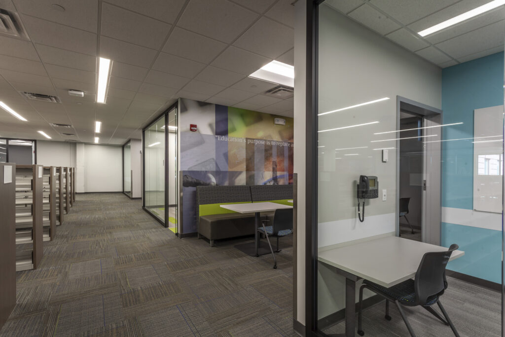 Terra served as the construction manager on this project which involved a complete remodel of the library. Work included updating technology and learning spaces as well as renovating the deans’ offices and restrooms. The library was temporarily relocated to the lower level during construction.