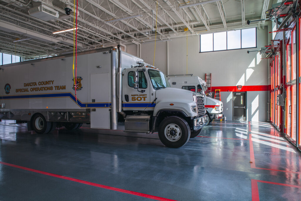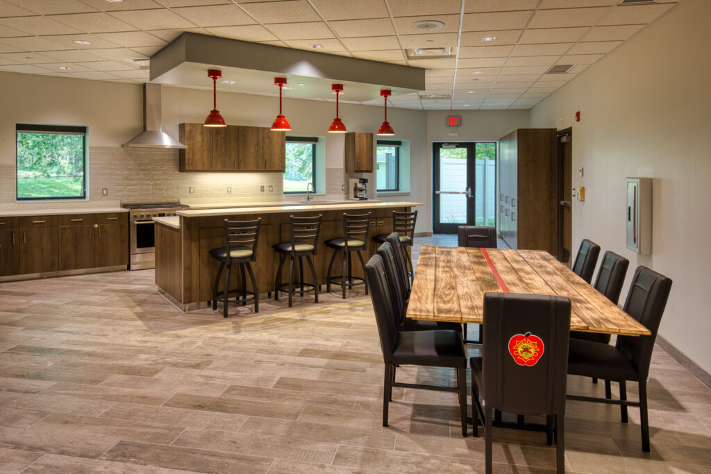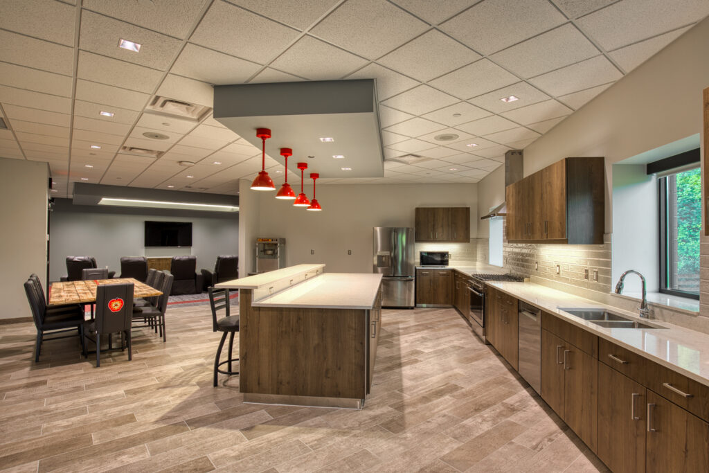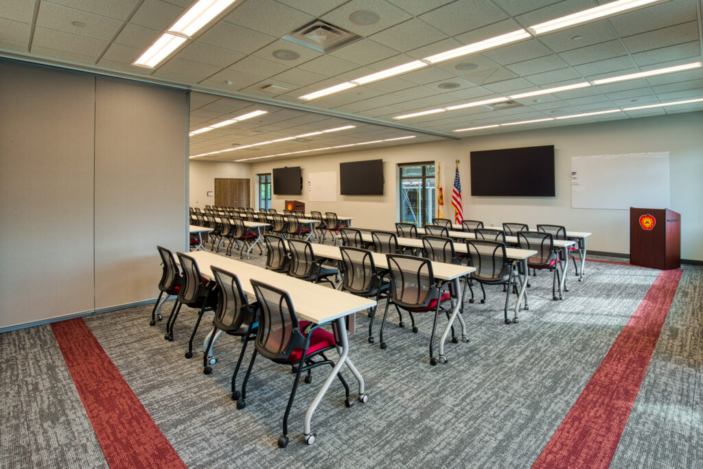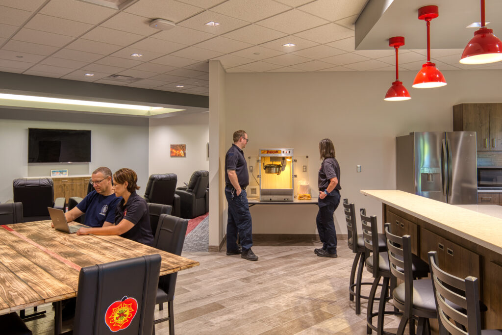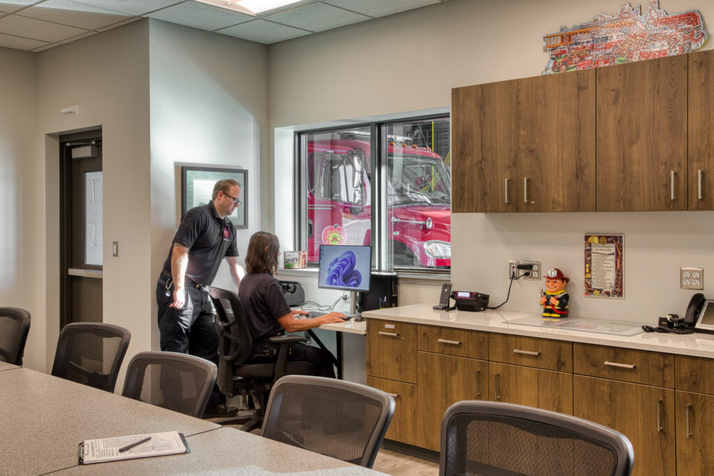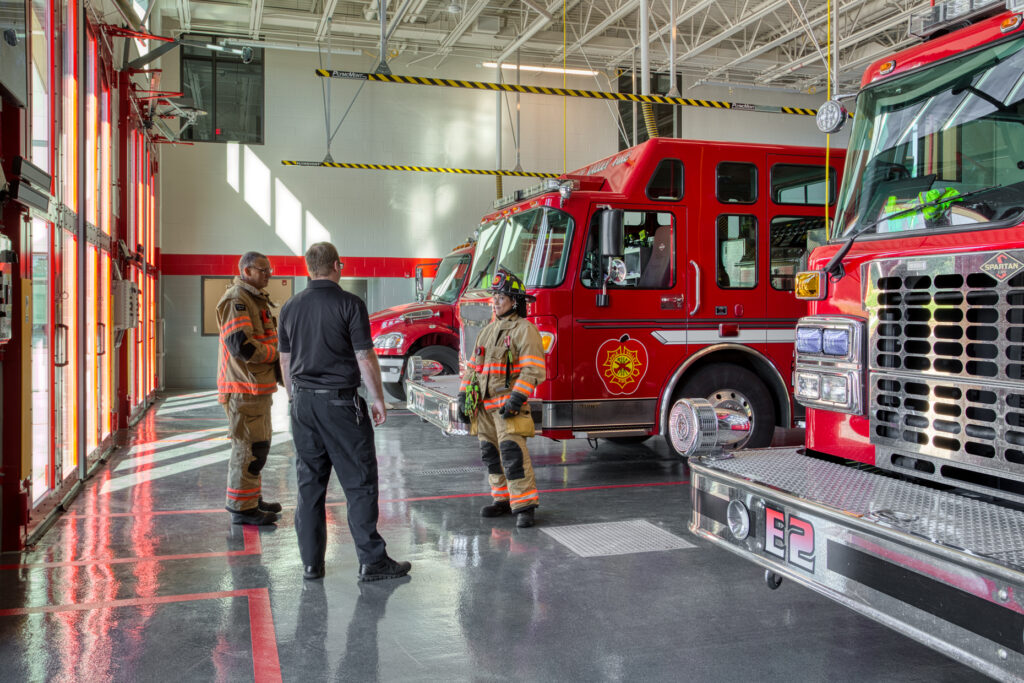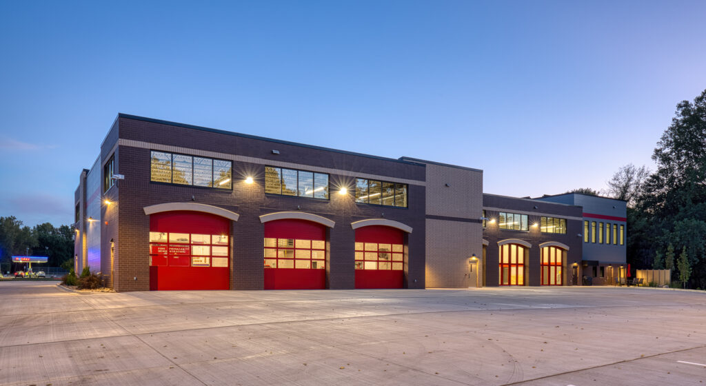 This project replaced the current Fire Station #2 and included a two-story operations wing with two sets of three pull-through apparatus bays split by a full training tower. It features a decontamination area, a turnout gear area, administration spaces, an education classroom, residential spaces, fitness room, hose tower, training features and support spaces. The project also included remodeling at Fire Stations #1 and #3 including upgrading the turnout gear and decontamination areas, and enclosing the fitness area at Fire Station #1.