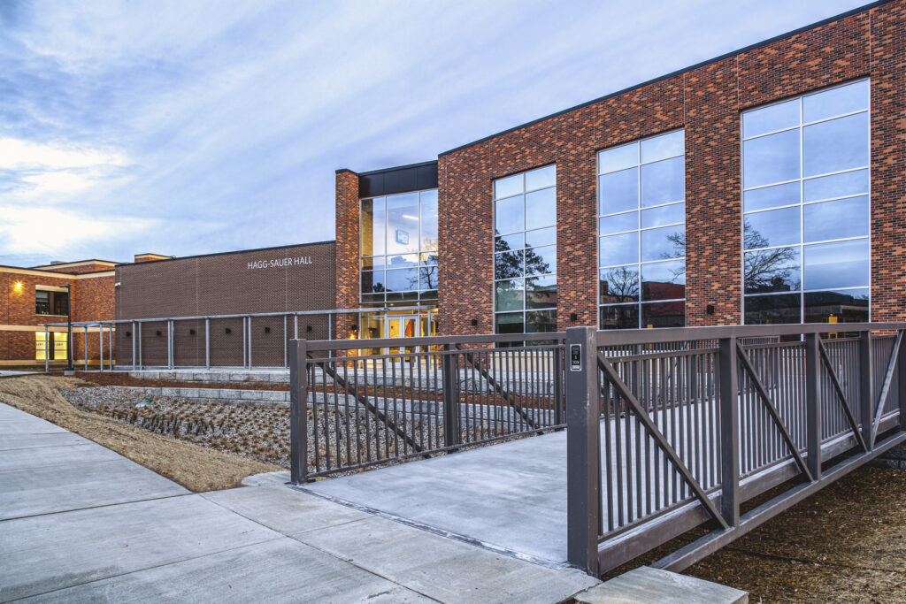 This project involved the demolition of the existing 82,500 sf Hagg-Sauer Hall and construction of a new 27,739 sf Academic Learning Center. Work also included 54,883 sf of renovation in Bensen Hall, Sattgast Hall, Bridgeman Hall, Bangsberg Hall and A.C. Clark Library. The scope include creating flexible teaching spaces and active learning classrooms, creating student study, gathering and collaboration spaces, upgrading faculty offices and multi-purpose labs, and removing $8,800,000 in deferred maintenance. The project impacted 14 different college programs.