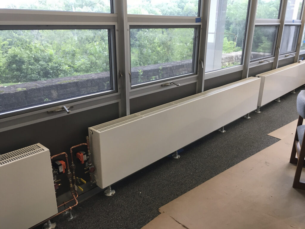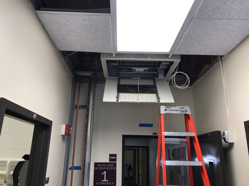 This project included the removal and replacement of all heating equipment with equipment capable of heating Myers Hall and the spaces within the facility with 120 degree water upon completion of Carleton’s UMP project. The work included replacement of all make up air heating coils, zone reheat coils, cabinet unit heaters and all fin tube radiation. The existing steam to hot water heat exchangers were left until the steam boiler system was ready to be disconnected. The existing pneumatic temperature control system was completely replaced with a DDC control system that communicates to the campus Energy Management System. New chilled water mains (supply and return) were installed for future connections if cooling is added to the building. The project was completed along with James/Cassat and Faculty Club Annex in the summer of 2017.