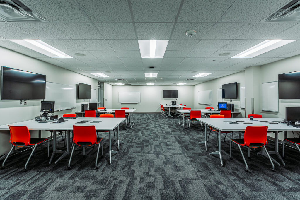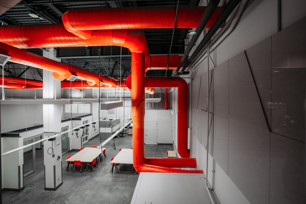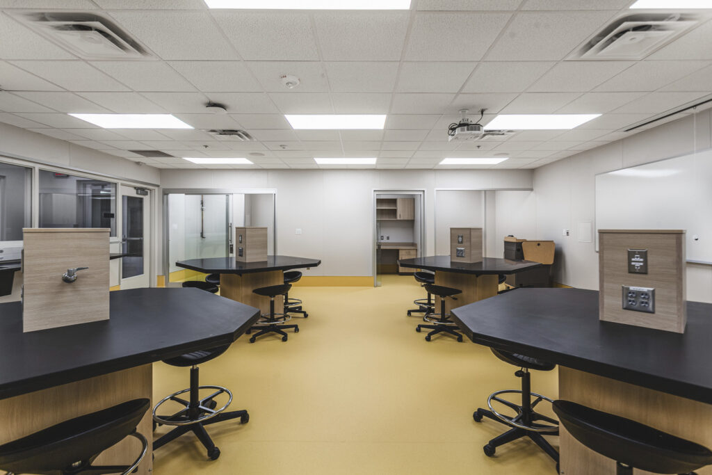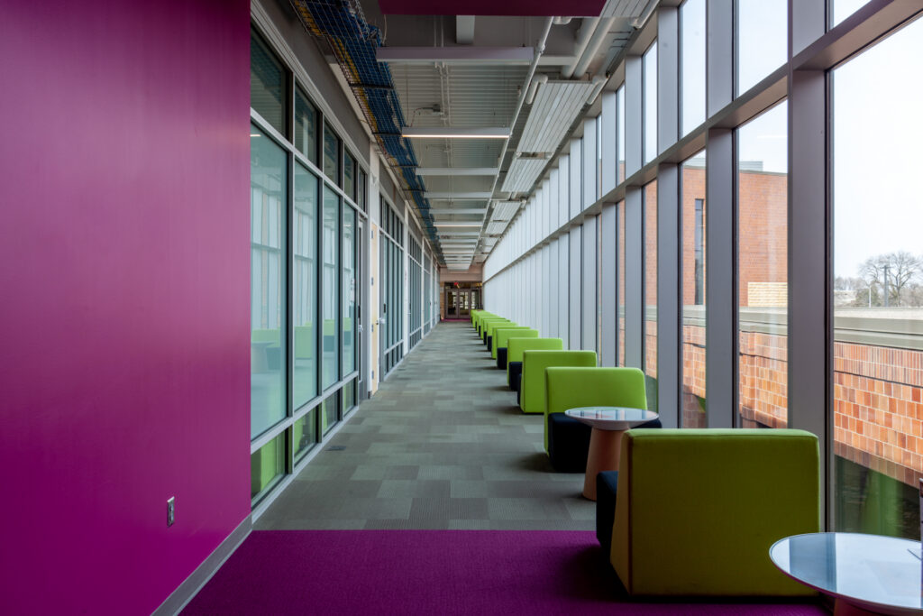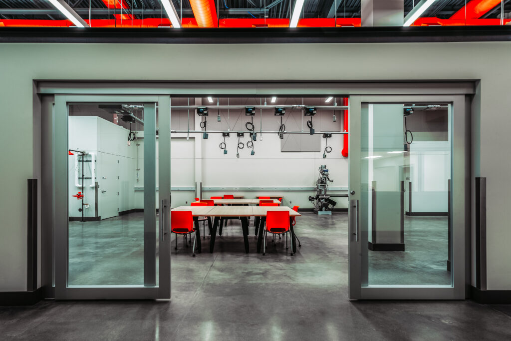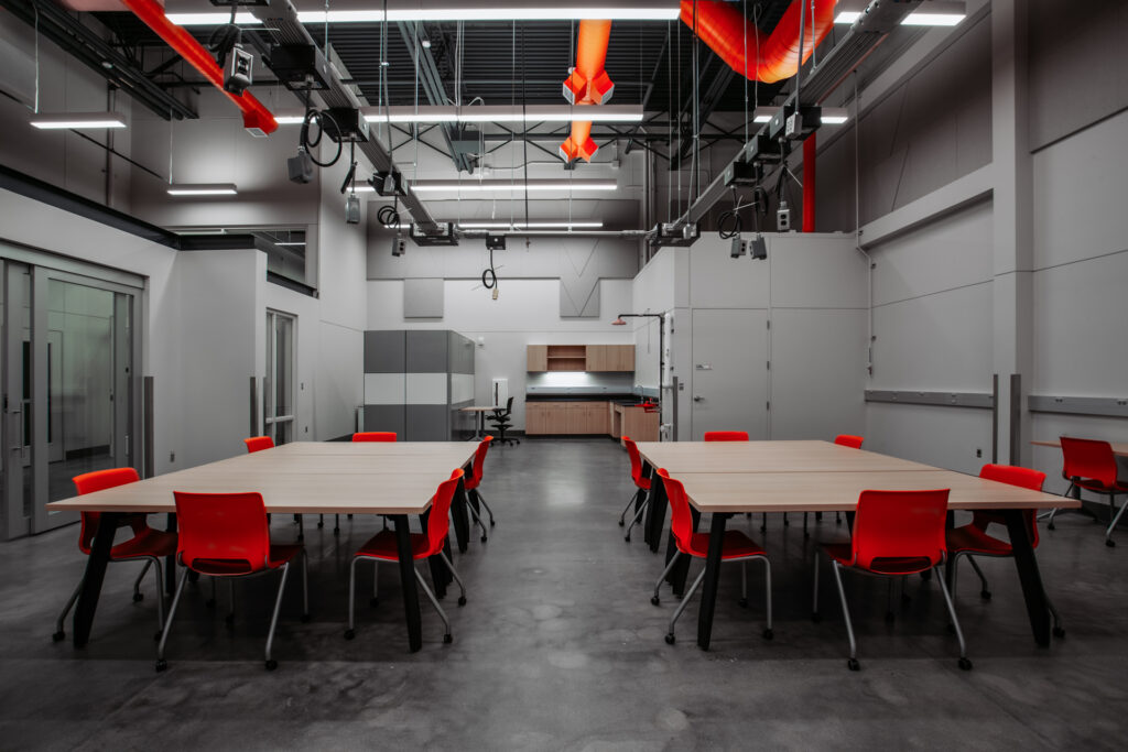 This project transformed two existing floors and added a new 4,000 sf mezzanine within the East Campus Main Building at Century College, creating a dynamic Engineering and Applied Technology Center. This multi-disciplinary hub features a learning commons and adaptable lab spaces serving Computer Science, Math and other STEAM disciplines. The welding lab was significantly expanded and modernized to support the growing Applied Technology/Mechatronics Program, including advanced robotic welding capabilities. The space also accommodates continuing education and customized workforce training. Additionally, upgrades addressed ADA compliance and deferred maintenance.