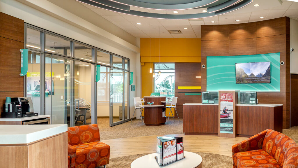 Firefly Credit Union was looking to relocate their Brooklyn Park branch. The new 4,574 sf credit union is conveniently located in a high-traffic area with close proximity to retailers, dining and entertainment. The standalone branch includes a drive-up as well as enhancements including an open floor plan, a tech bar and a refreshment bar for visitors.