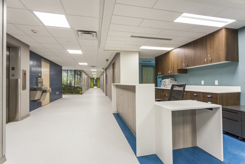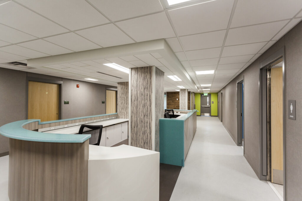 This project included a multi-phased remodel on all three levels of the existing facility and added a mental health component. Work included patient rooms, waiting rooms, nurse stations, conference room, dining room, kitchenette, lounge, intake/treatment rooms, offices, laundry room and restrooms. The existing detox facility remained open in reduced operation during the renovation.