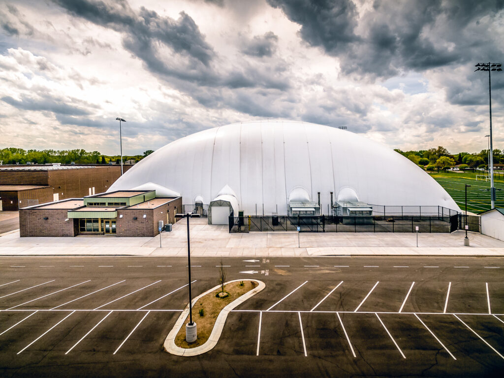 This project included the construction of a 2,452 sf facility with lobby, offices, restrooms and storage. The facility connects to a 92,480 sf inflatable sports dome with soccer field (including field marking for football, lacrosse and softball), three batting cages and a walking track (with net protection).