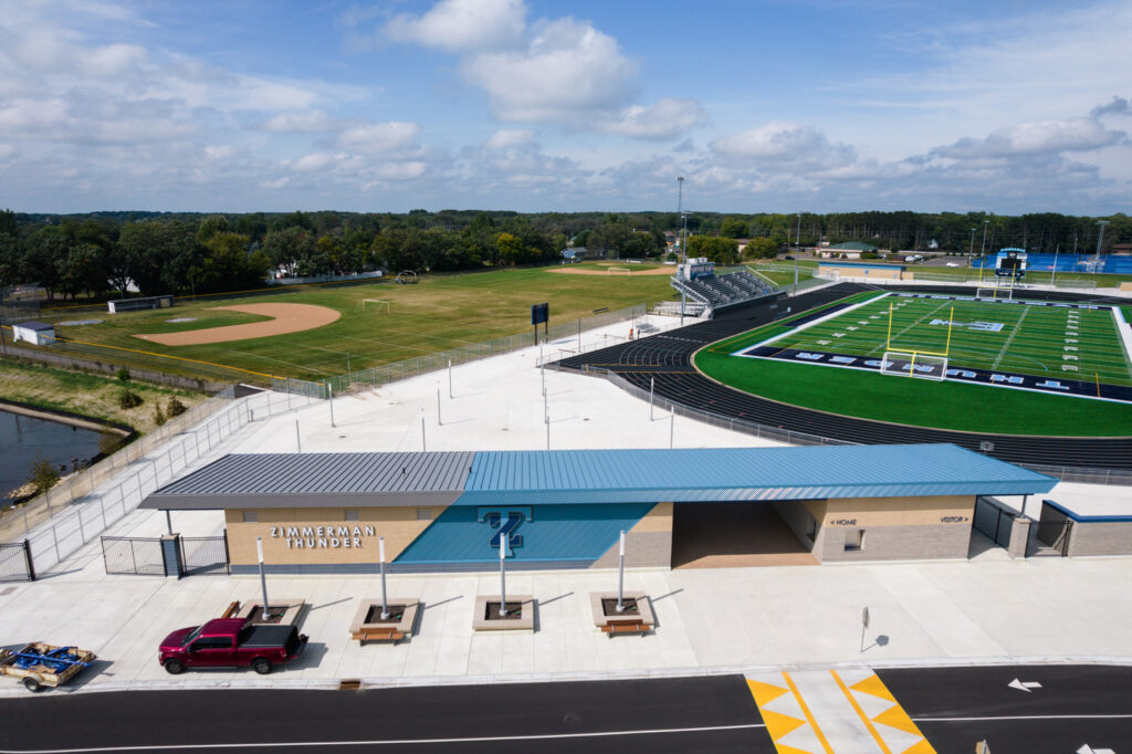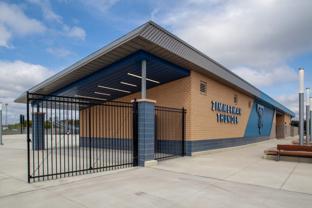 This two-phase project enhanced athletic facilities and site infrastructure. Phase 1 delivered new concessions and restrooms on the south side of the football field. Phase 2, completed during summer break, included a full parking lot overhaul, retention pond construction, new underground utilities, and 120,000 square feet of concrete flatwork.