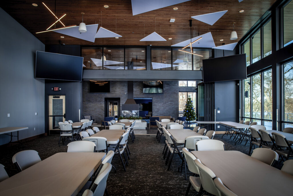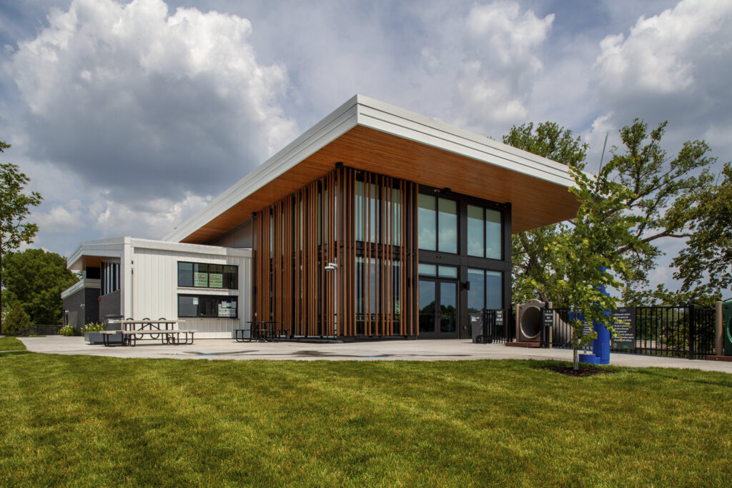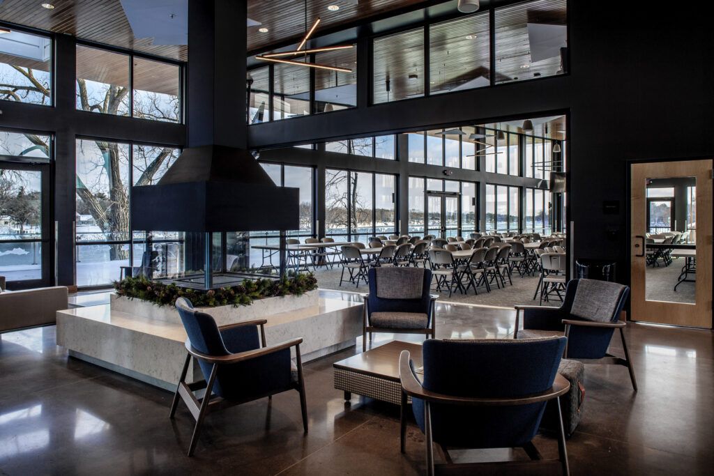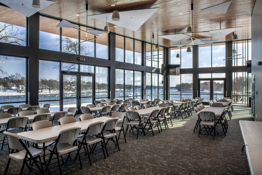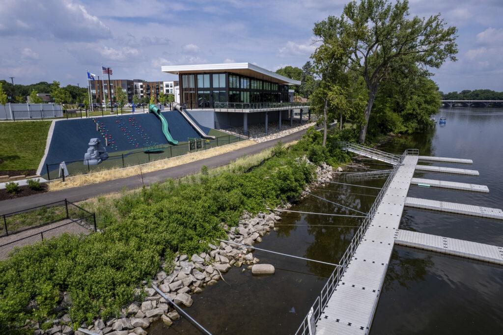 This project was part of a 12-acre development in an area known as Mississippi Crossings. Located along Highway 169 and the Mississippi River in Champlin, Minnesota, this project included construction of two primary areas. An open-air, riverfront amphitheater operates for concerts, outdoor presentations and other community events. A 9,500 sf public pavilion and plaza allows for all-season functionality with private event options. In addition to this, the project consisted of multiple outdoor gas fire pits, a lawn bowling court, a climbing wall playground and a splash pad. A massive floating dock connects the river to the park, which contains dozens of places to tie off your boat to go enjoy the park.