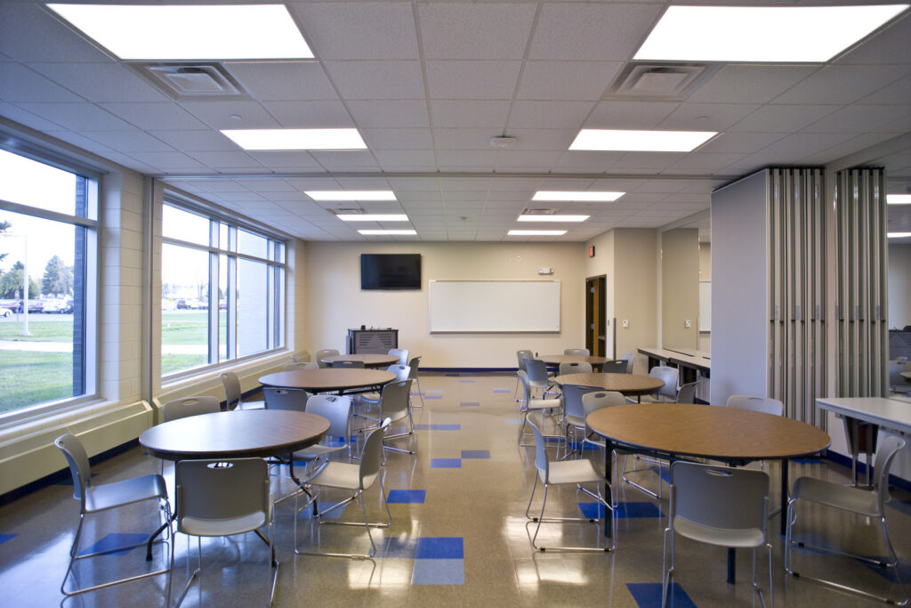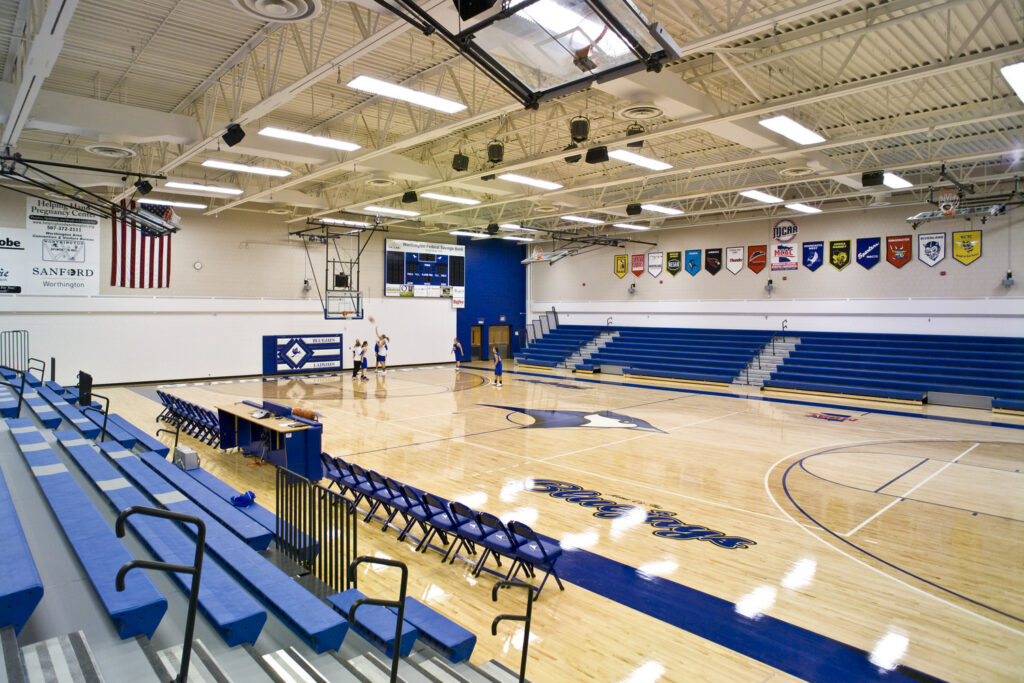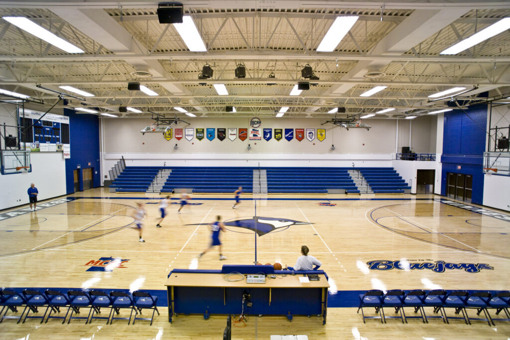 This project renovated the existing Fieldhouse facilities for physical education, health, law enforcement and physical therapy technician programs. It also included the renovation of spaces for toilets and locker rooms, an expansion of the existing gymnasium adding offices, classrooms, training rooms and concessions, and the construction of a geothermal well field that included 72 wells over 250 feet deep.