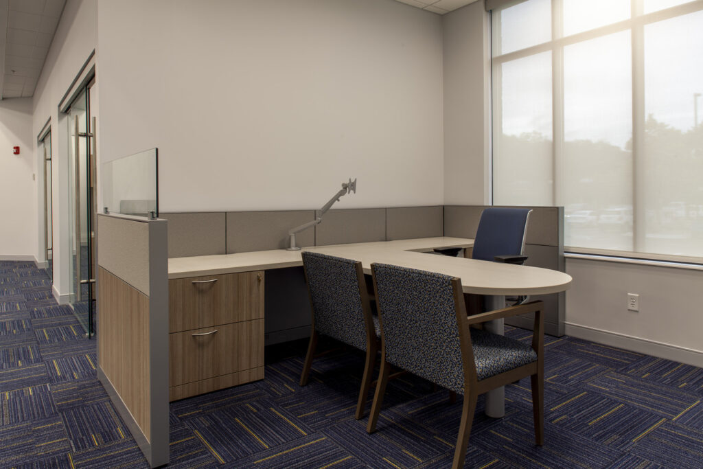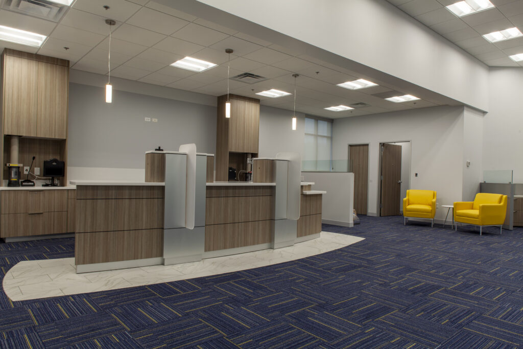 This project involved the 2,947 sf interior remodel. Work included two new private consultation rooms, work room, coupon booth, updated teller station, conversion of two unisex restrooms into one larger restroom, and new finishes throughout.