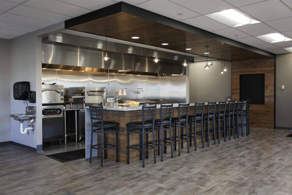 This tenant improvement project involved the renovation of an existing space for a breakroom and test kitchen within the Performance Foodservice distribution center. The project was completed in two phases with the 1,806 sf breakroom being completed first, followed by the 1,443 sf test kitchen. Performance Foodservice will use the space for customer testing of their array of food products.