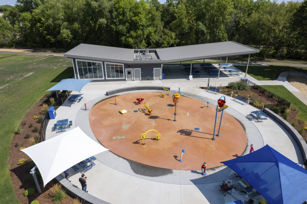 The City of Rogers partnered with Terra Construction to bring new energy to an existing park with the addition of a vibrant splash pad and a shared community building. The 4,655-square-foot facility features a flexible community room, restrooms, and a covered picnic shelter that supports year-round use. The splash pad quickly became a park favorite, offering safe, interactive water play for all ages and adding a lively focal point to the site. Together, these improvements created a welcoming destination that strengthens community connections and elevates the overall park experience.