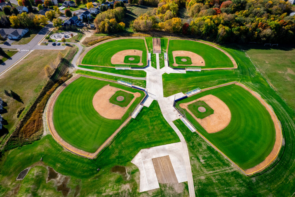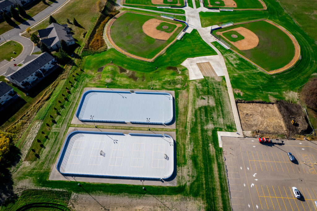 The South Community Park project in Rogers, MN, transformed a 3.36-acre site into a vibrant, multi-use recreational space for the community through a thoughtfully executed two-phase construction process. Phase 1 focused on expanding outdoor recreation opportunities with the construction of four youth ballfields, eight covered dugouts, two batting cages, and two hockey rinks. To support increased park use, we also completed a parking lot expansion and added scenic trails weaving through the nearby wetlands. As part of our commitment to environmental stewardship, we built drainage basins to manage field runoff — protecting the sensitive wetland areas adjacent to both the park and Rogers Elementary School. Phase 2 added key amenities to enhance visitor comfort and accessibility. Working closely with the owner’s structural partner, we constructed a new warming house, storage facility, concessions building and fully accessible restrooms — creating a welcoming, year-round destination for recreation and community gatherings.