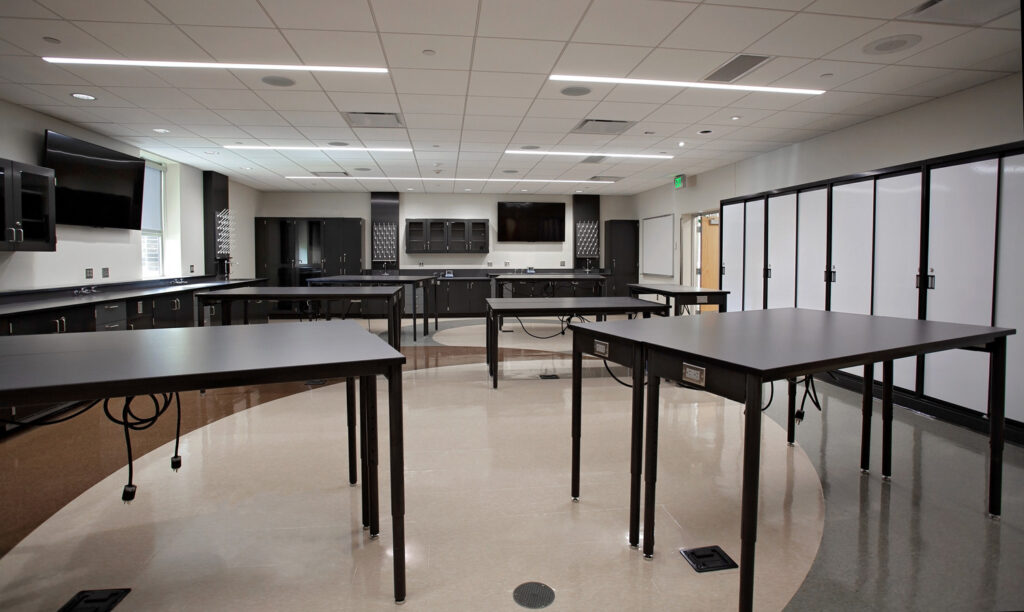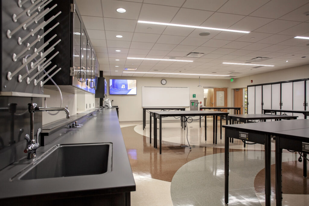 This project involved a 2,700 sf renovation of two existing biology labs and a prep room along with a 2,000 sf corridor remodel. It was made possible through a donation from CentraCare Health and doubled the numbers of seats available for students. The scope included new corridor artwork, new laboratory casework and fixtures, new flooring and ceiling, an updated mechanical duct system and updated electrical connections.