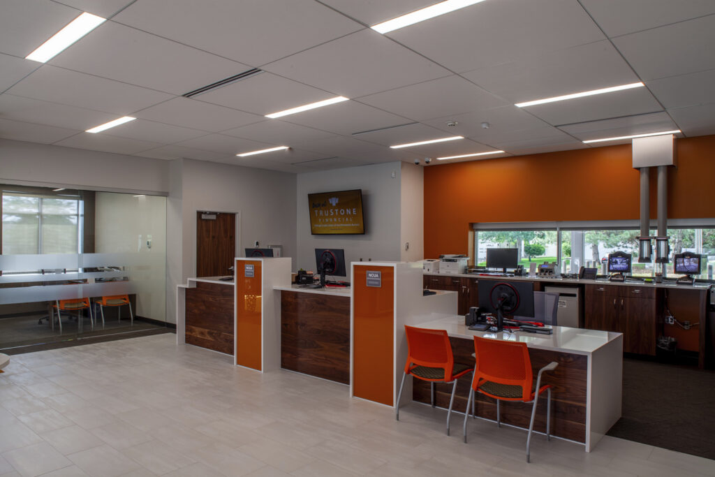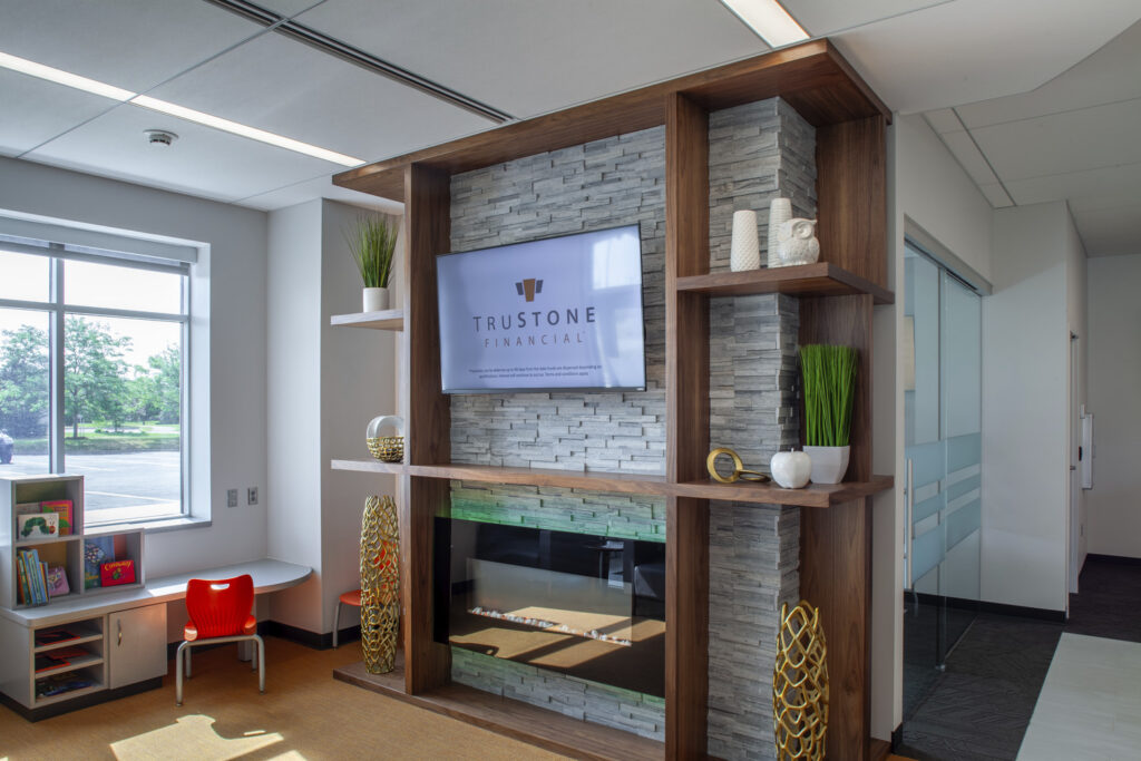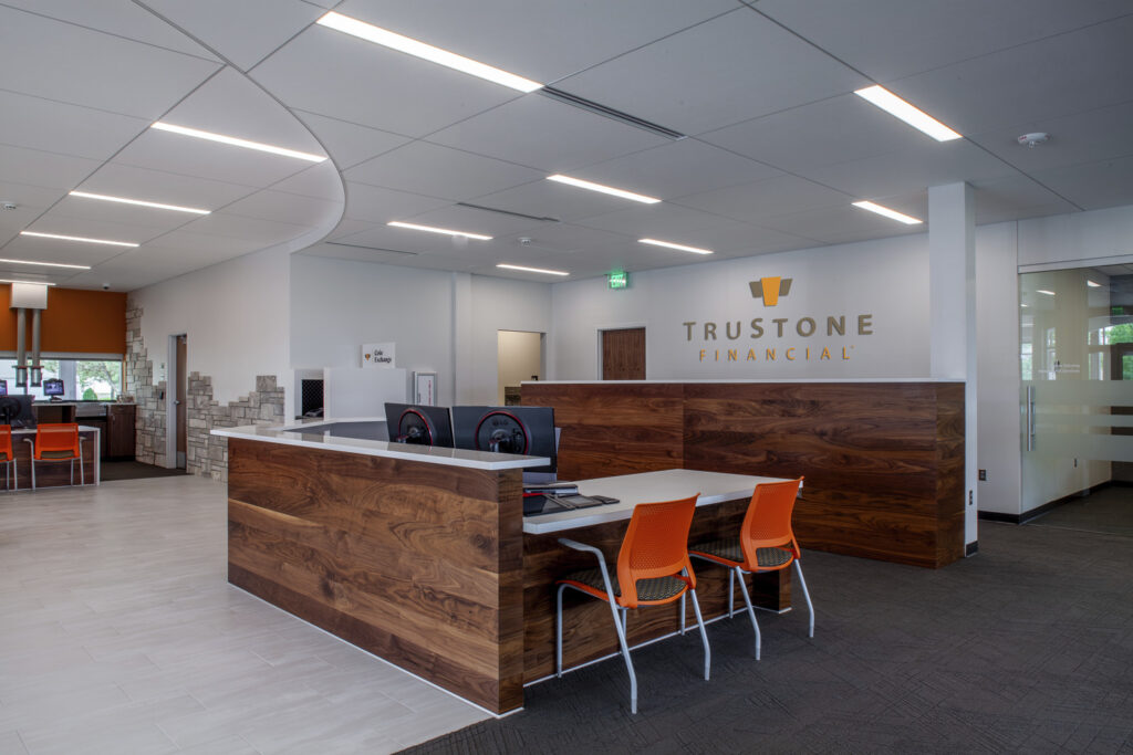 This project included a 4,615 sf remodel for Trustone Financial. Work included a new lobby, teller pods, waiting area, offices, conference room and breakroom.