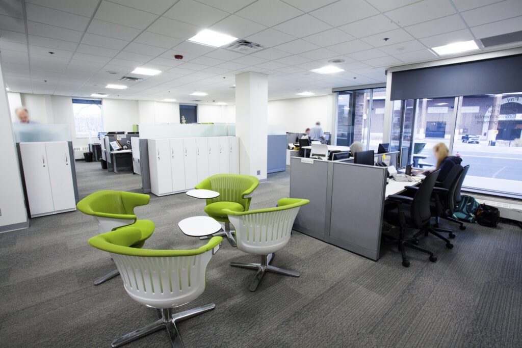 This project consisted of the remodeling of approximately 7,200 square feet of existing office and warehouse space into new flexible, collaborative office space for the Environmental Management Department of the University. The project brought together staff which were located in the Boynton Health Services Building and the Fay Thompson Center.
