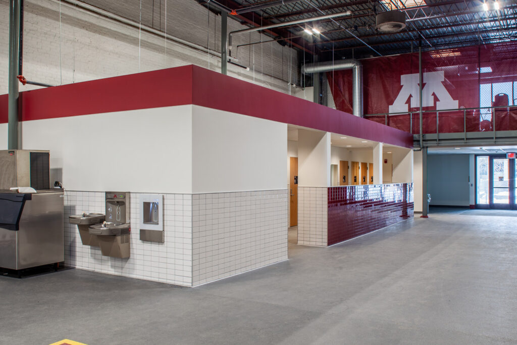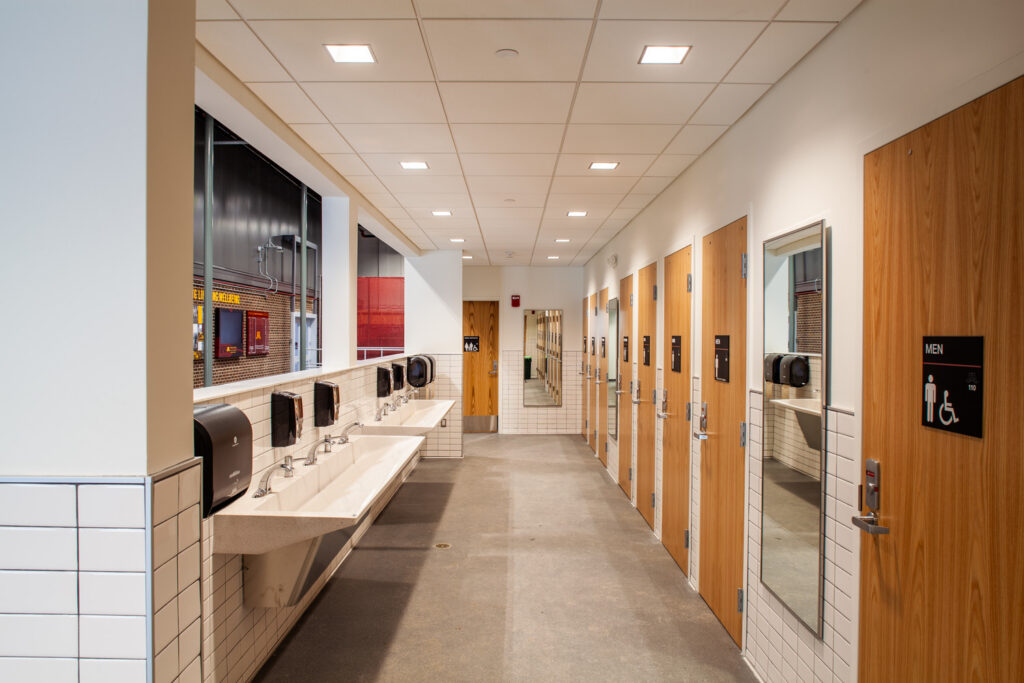 The University’s Fieldhouse is accessed by open recreation participants, the University of Minnesota’s Track and Field team, and a variety of University and community members. It had limited restrooms which were not accessible and did not meet quantity requirements for large scale events. This project addressed these concerns through construction of accessible restrooms, a custodial closet and a small office.