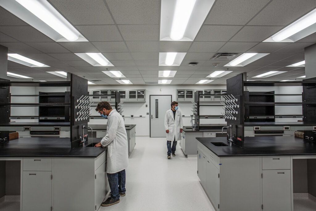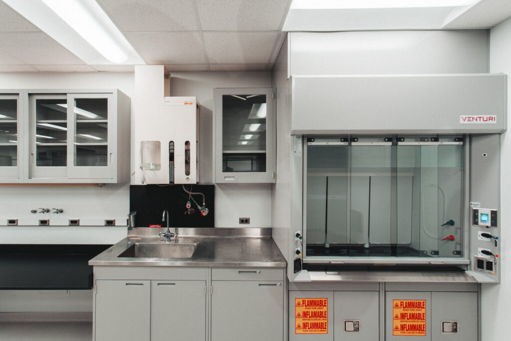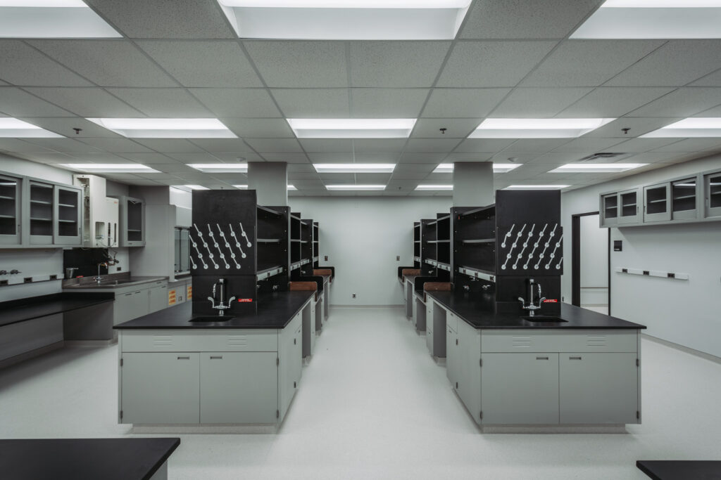 This project involved the renovation Suite 4-145, a lab on the 4th floor of Moos Tower. Work included mechanical, electrical and finish work, removal and replacement of an existing fume hood and countertops, and accessibility upgrades in the corridor.