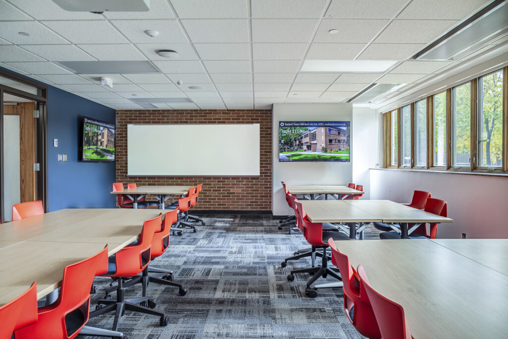 This project involved all three levels of the Humanities Building on the University of Minnesota’s Morris campus. The scope included finishes, furniture and technology for five classrooms, language teaching center, media screening room, two conference rooms, a presentation lounge and collaborative space.
